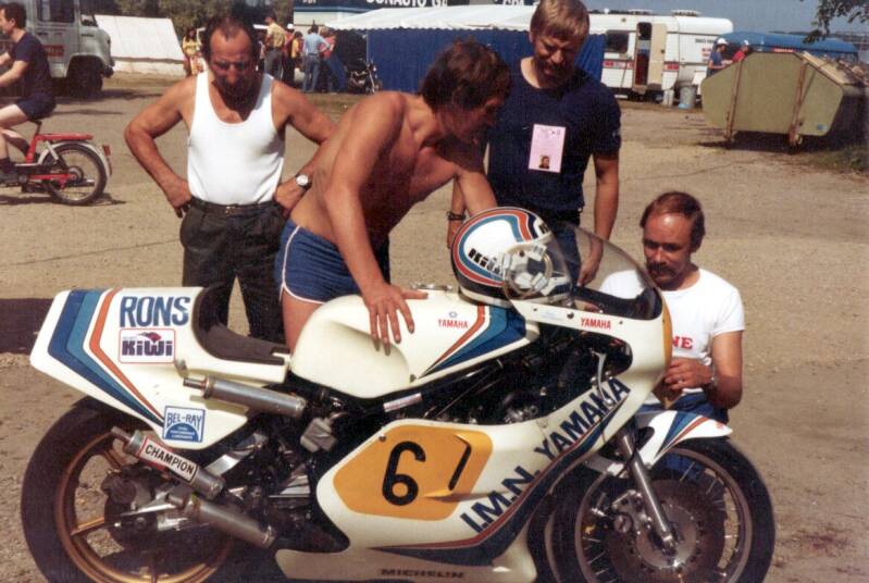 Op bovenstaande foto is de unieke stijl van Boet te zien die in de bochten de motor plat duwde in plaats van ernaast te hangen zoals Jack Middelburg en Randy Mamola dat deden . Vooral Mamola hing bijna los van de motor en niet alleen met de knie aan de grond maar ook met zijn heup . Vandaar dat deze coureurs ook kniebeschermers hadden , behalve Boet die de knie nooit zover uitstak . Pas jaren later had ook Boet kniebeschermers zoals op de verder naar boven staande foto is te zien.